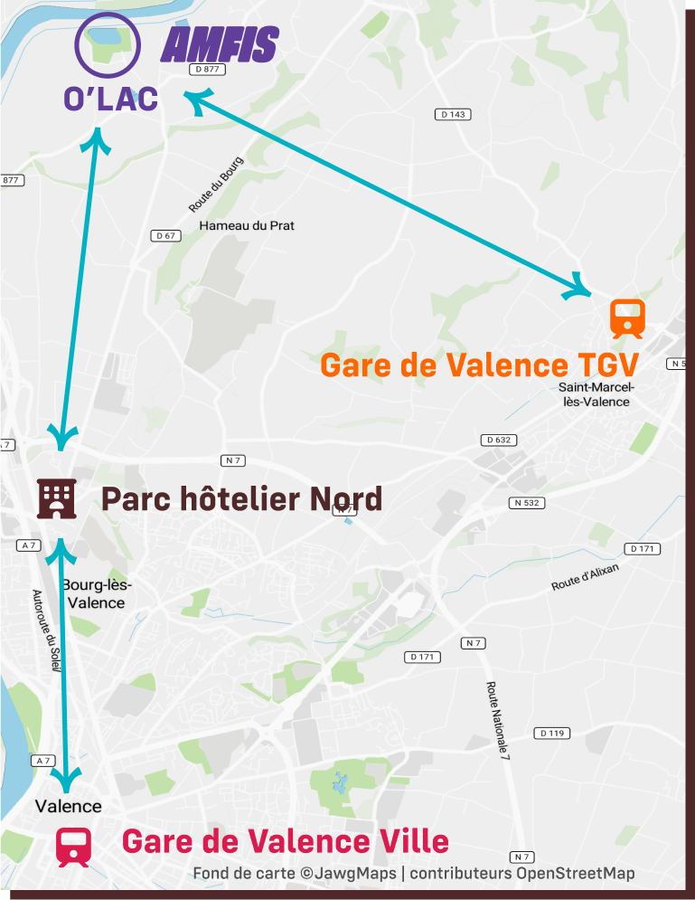 Pendant toute la durée des AMFIS, des navettes gratuites seront mises à disposition entre la gare Valence TGV, la gare Valence ville, le parc hôtelier de Bourg-lès-Valence et le site des AMFIS.